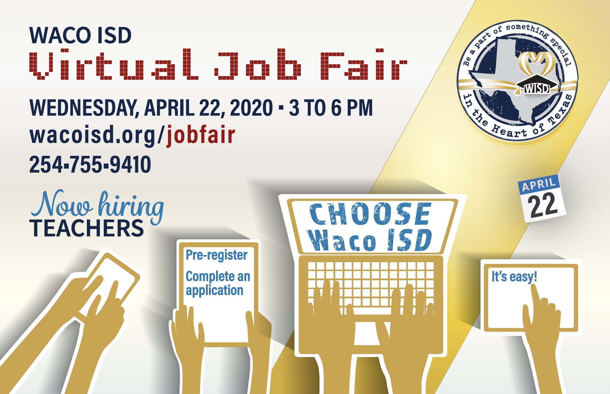 Dont forget that the Waco ISD Job Fair is this Saturday March 24 at the University High gym from 9. WACO Texas If youre on the job hunt and are hoping to work with a school district Waco ISD could be the place for you. Waco Independent School District.